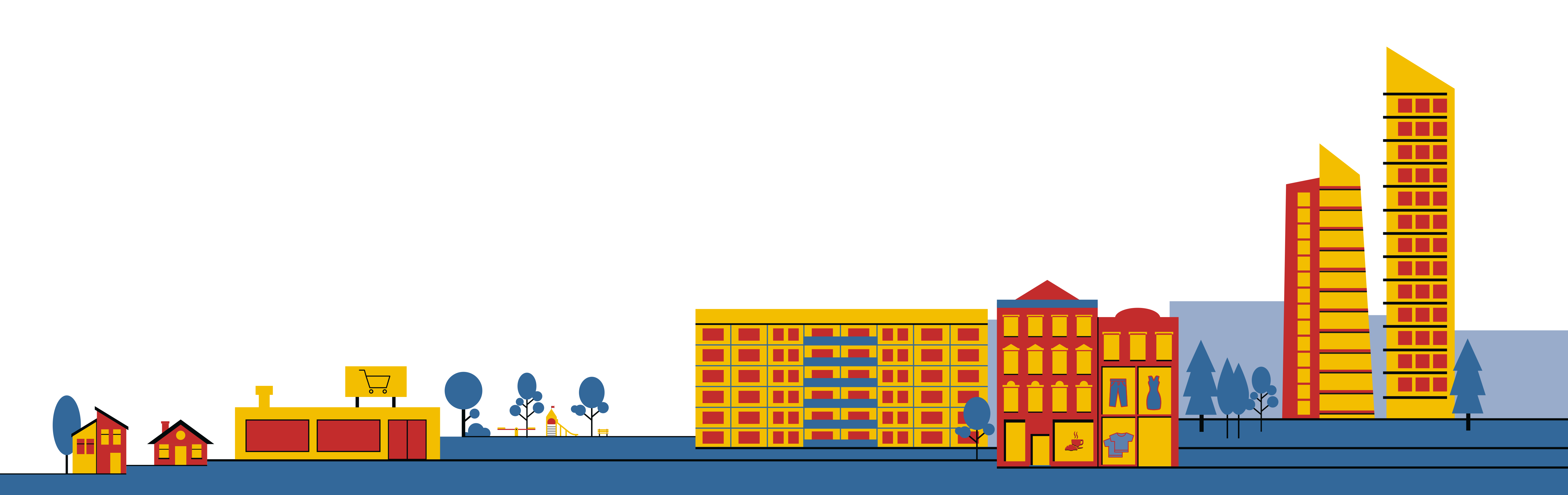 Aufgabe war es, schematische Illustrationen zu entwickeln, die nur die Farben des Projektlogos sowie schwarz enthalten und hauptsächlich aus den Grundformen Kreis, Quadrat, Dreieck bestehen.